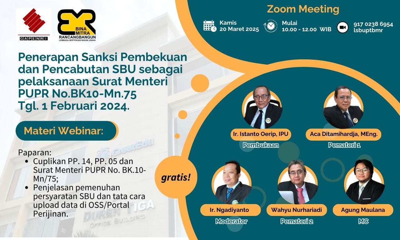 Dalam rangka pelaksanaan Surat Menteri PUPr No. BK 10-Mn.75, perlu dilakukan program Knowledge Management yang dilaksanakan untuk pembinaan anggota GAPENRI dalam rangka PengembanganUsaha Berkelanjutan. Tema regulasi yang akan disosalisasikan akan mengikuti situasi dan kondisi pemberlakuan peraturan baru yang terbit pada tahun berjalan oleh regulator terkait. Pembinaan Usaha berkelanjutan 5 Tahun GAPENRI
